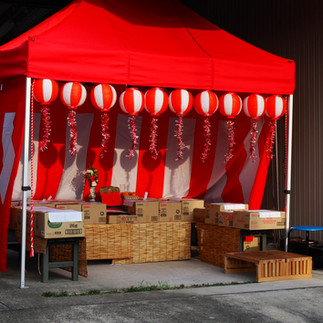 お地蔵さんの周りには机や床机、むしろなどを広げて、