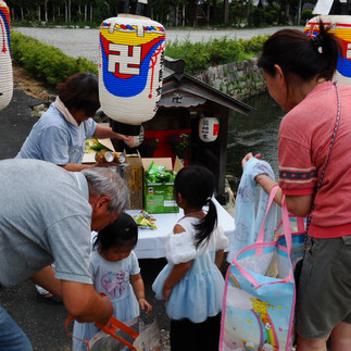 そのお供えを並べて、夕方に子供達がお詣りに来るのを待ちます。