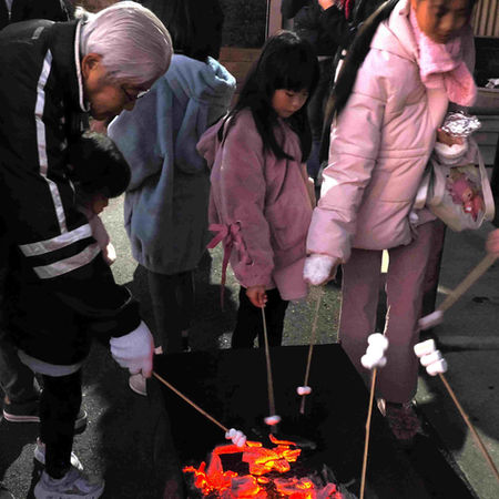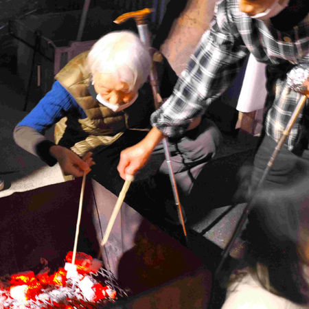 また、焼き芋の炭火があるなら「焼きマシュマロ」もやっちぇ!ということで、長い竹串に刺したマシュマロを炭火で炙って、トローり香ばしいマシュマロも大人気!また来年もできるかな?