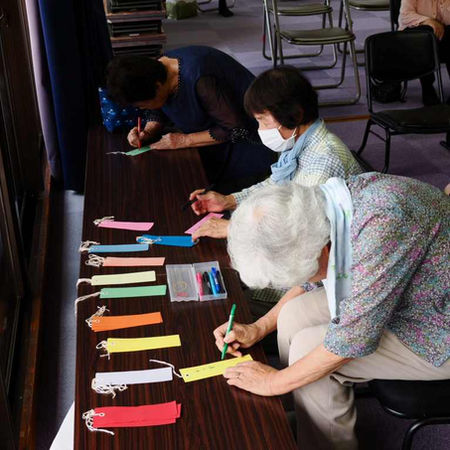 来場された方から、短冊に願い事を書いて、みんなの願いを 七夕飾り に結びました。